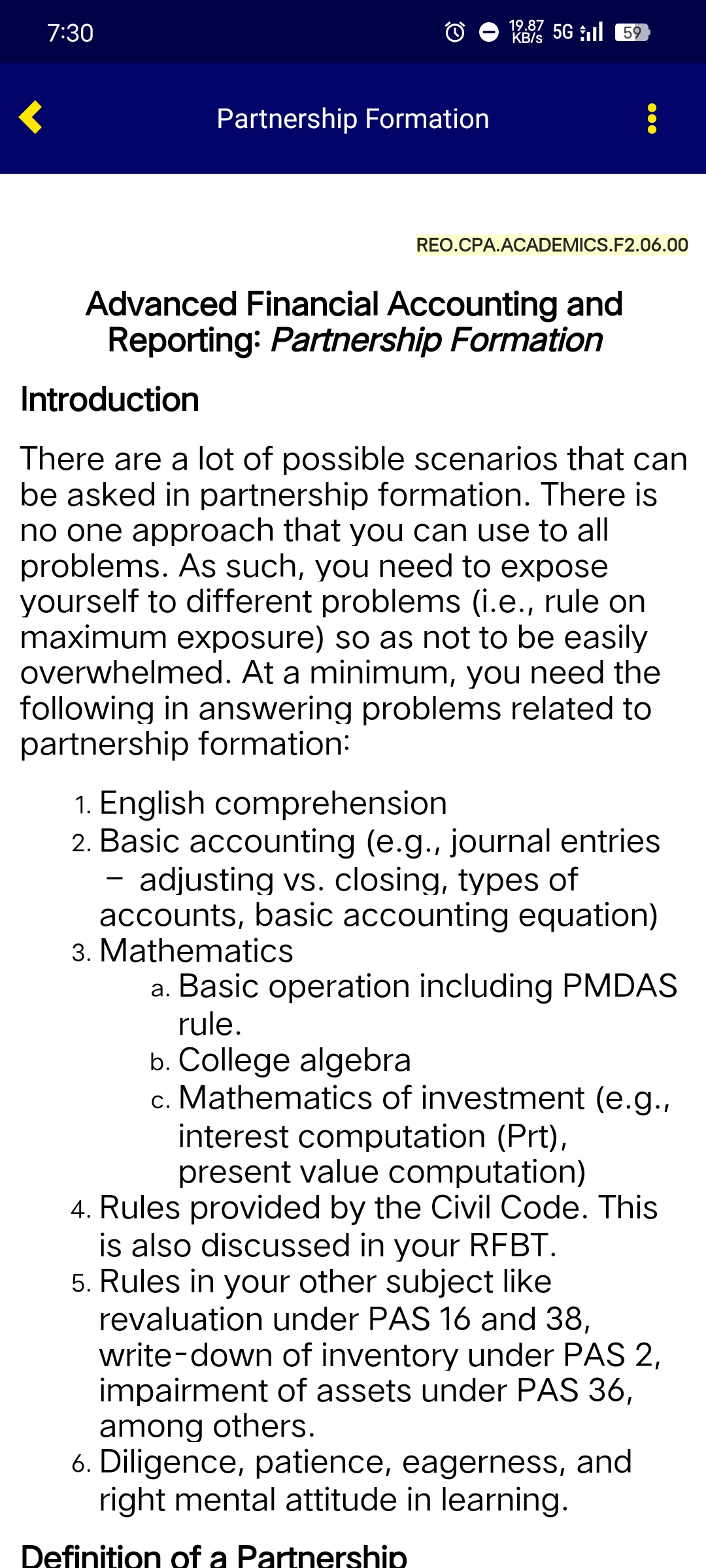 The app offers a comprehensive review that encompasses all topics and details included in the CPALE syllabus and TOS (Table of Specifications). It provides lecture notes to introduce users to the fundamental concepts of each topic and offers in-depth lectures to further explore complex subjects. During these lectures, sample problems are presented to help users apply these concepts and theories effectively. Users can access the app at their convenience, allowing them to learn at their own pace in a stress-free environment.