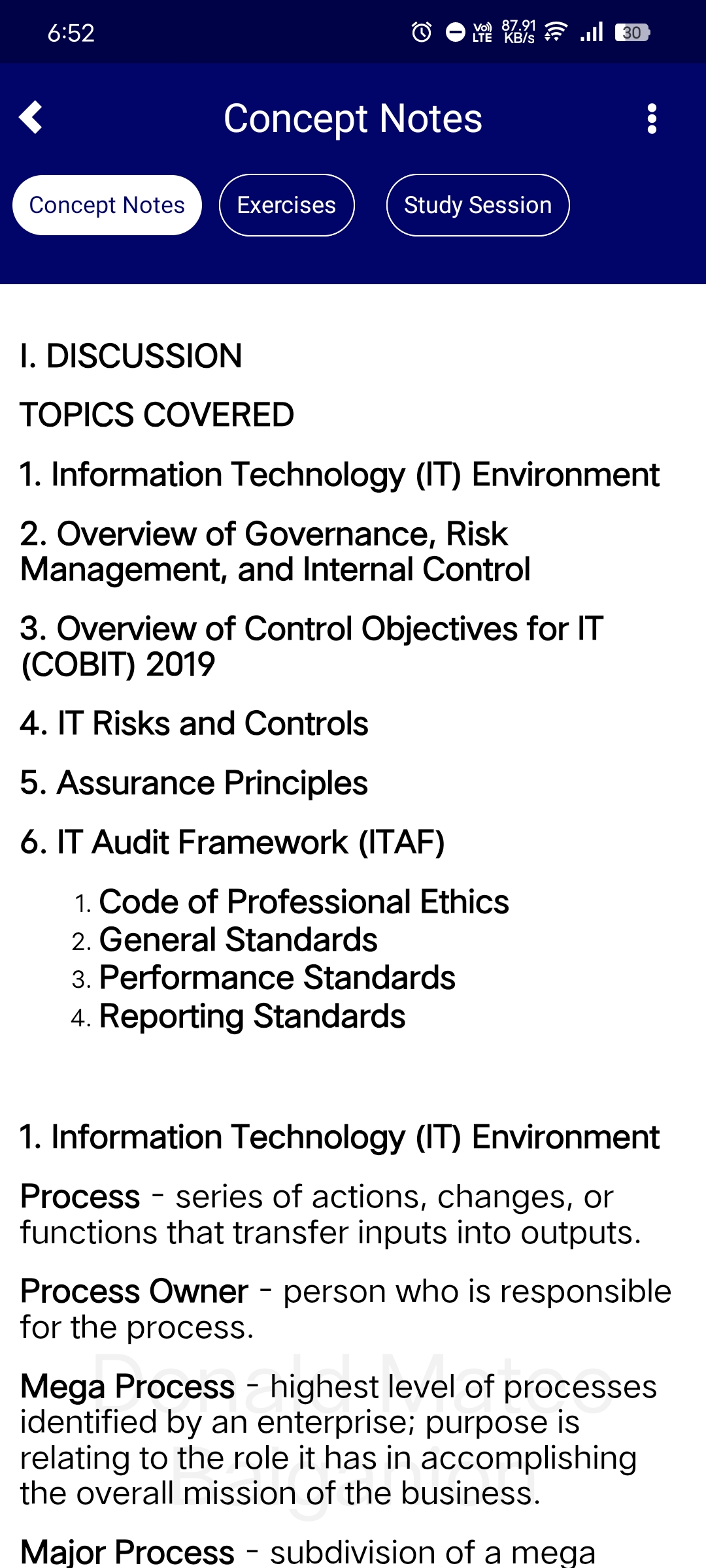 It is a comprehensive review that covers all the competencies of the CISA examination as indicated in its table of specifications. It includes lecture notes intended to orient the users on the basic concepts of each topic. The app offers video lectures to augment the lecture notes for an in-depth discussion of the subject's more complex and complicated topics. Sample problems are presented during the lectures to teach the user to apply the concepts and theories. Users can access the app and learn about their pacing in a stress-free environment. To test the user's progress, the app provides interactive online exercises to develop the user’s speed, accuracy, and endurance needed to pass the exams. Exercises are constantly updated with fresh materials on a timely basis.
