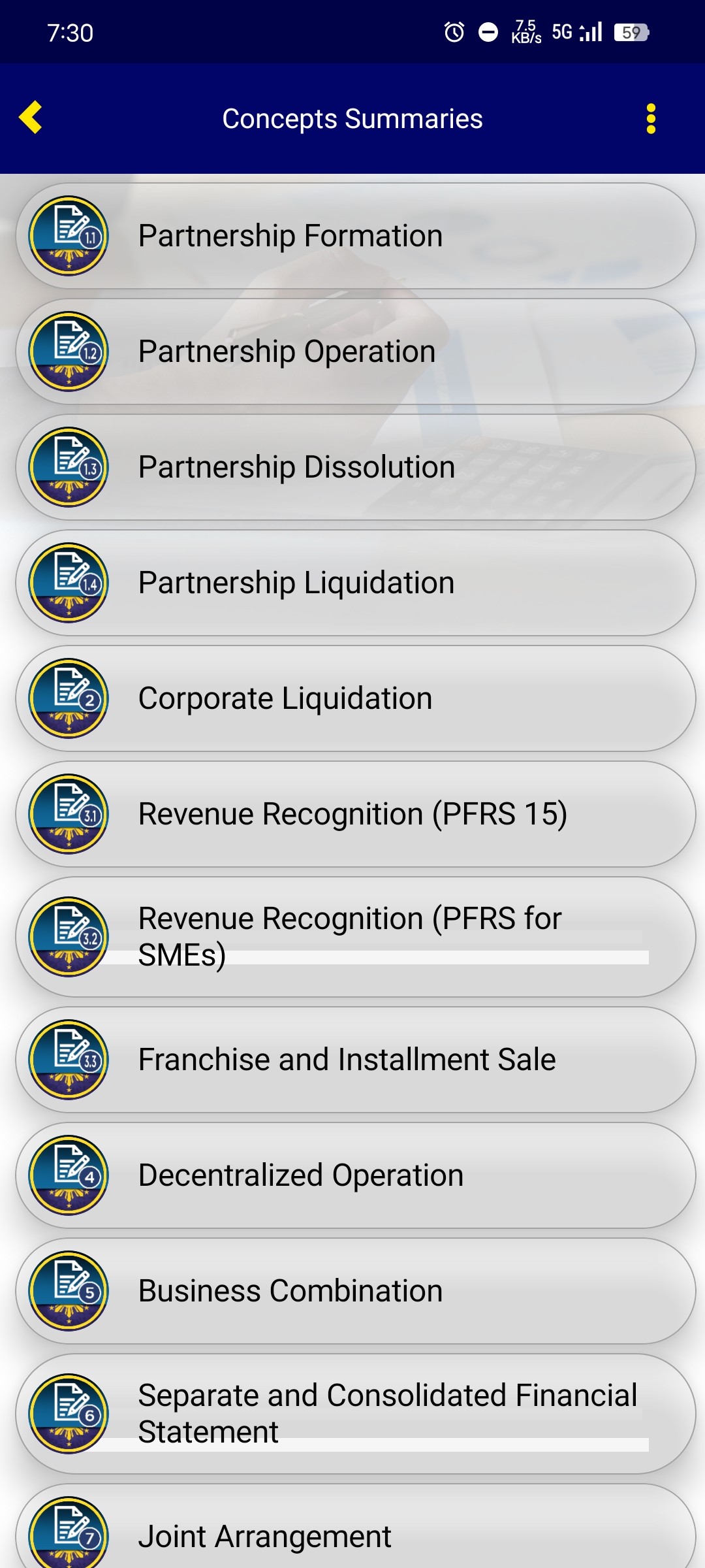 The app offers a comprehensive review that encompasses all topics and details included in the CPALE syllabus and TOS (Table of Specifications). It provides lecture notes to introduce users to the fundamental concepts of each topic and offers in-depth lectures to further explore complex subjects. During these lectures, sample problems are presented to help users apply these concepts and theories effectively. Users can access the app at their convenience, allowing them to learn at their own pace in a stress-free environment.